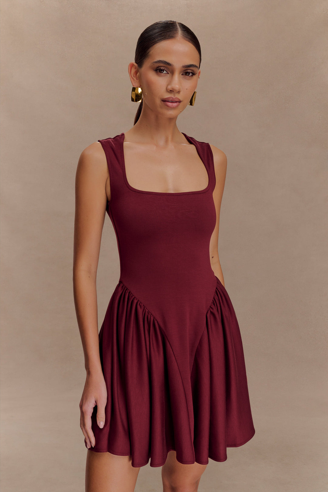 Sharon Scuba Jersey Mini Elbise - Şarap