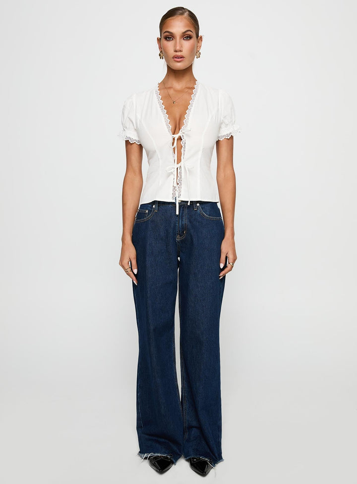 Bolluk Bağlamalı Dantel Üst Beyaz