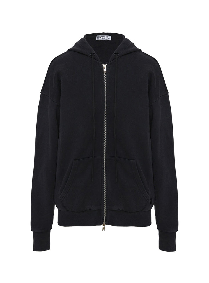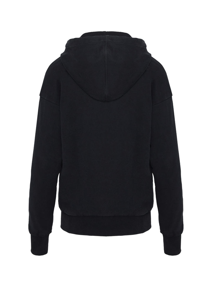Tüm Gün Büyük Boy Kapüşonlu Üst Yıkanmış Siyah