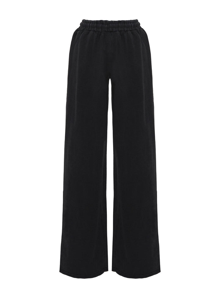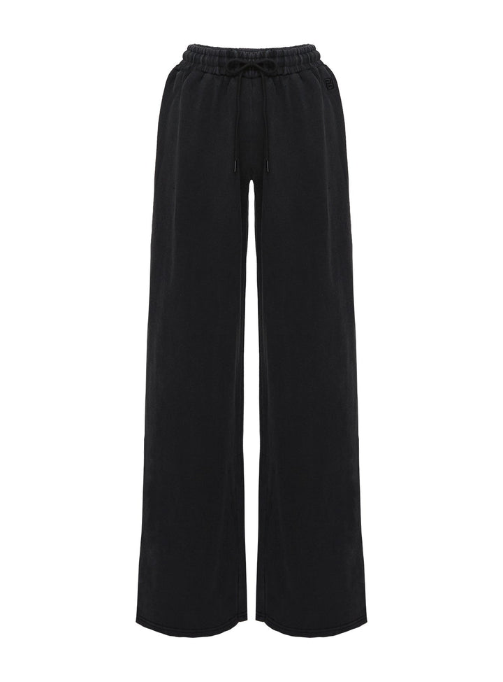 Tüm Gün Düz Paça Eşofman Altı Yıkanmış Siyah
