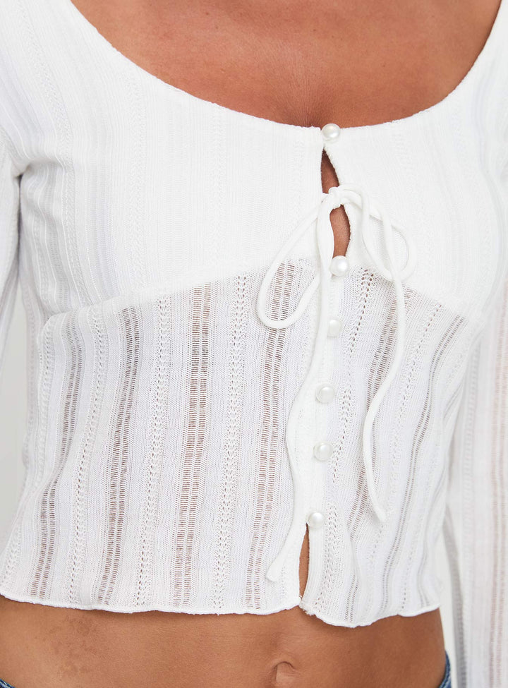 Tüm Mevsimler Uzun Kollu Üst Beyaz