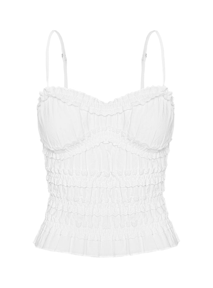 Angelie Pamuklu Büzgülü Üst Beyaz