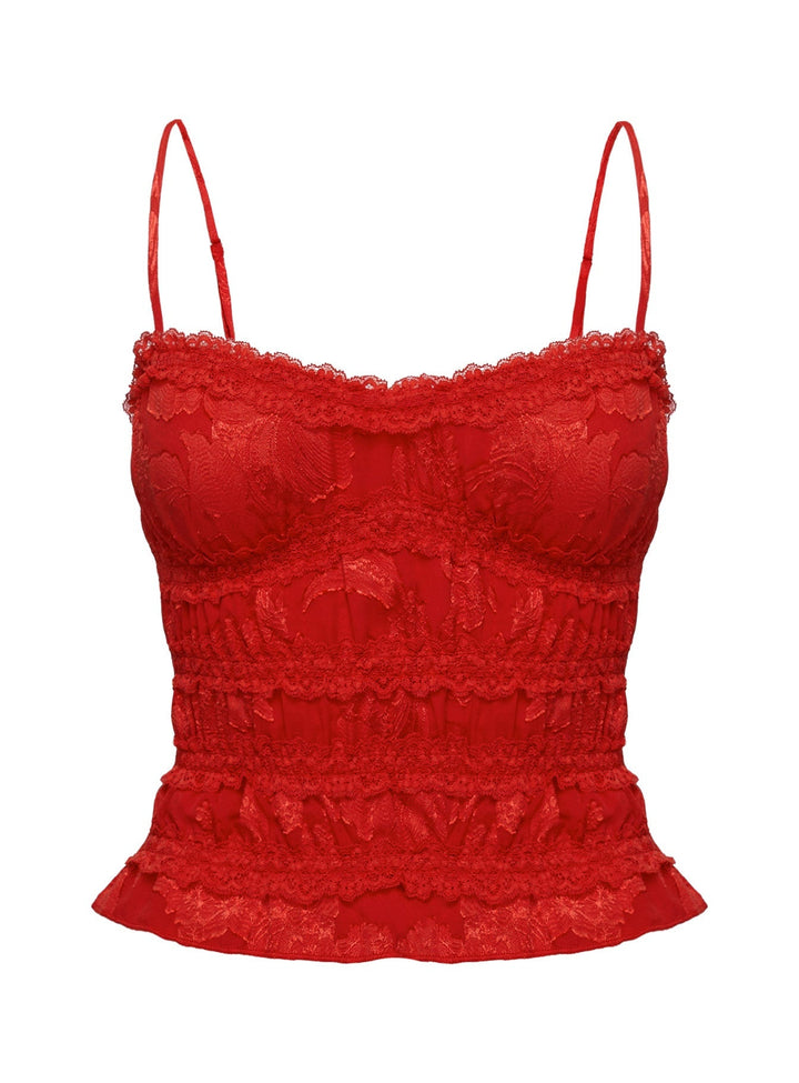 Angelie Jakarlı Büzgülü Üst Kırmızı