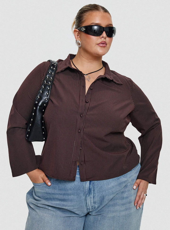 Anni Pinstripe Gömlek Kahverengi Eğri