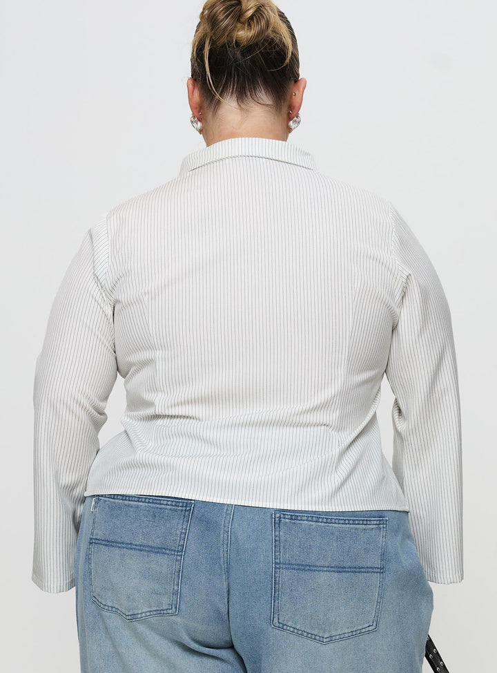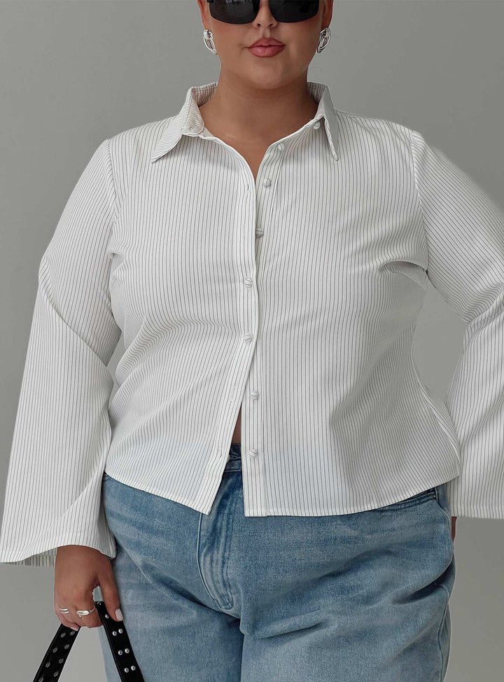 Anni Çizgili Gömlek İnce Çizgili Beyaz Eğri