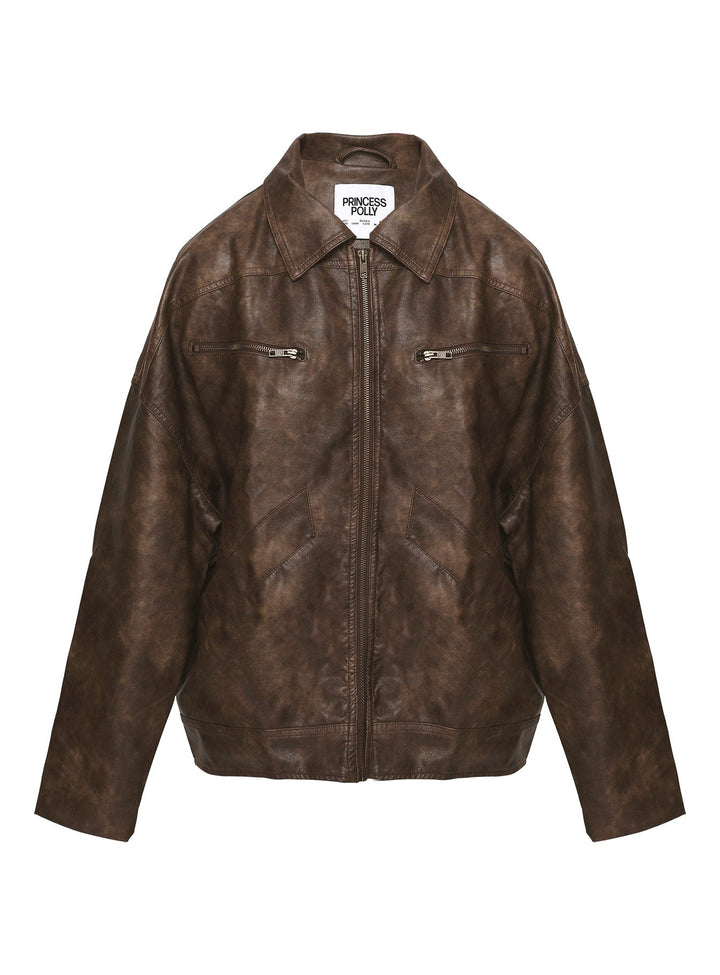 Avenelle Büyük Boy Suni Deri Ceket Yıkanmış Kahverengi