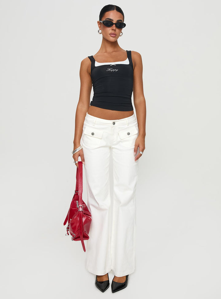 Benicale Düşük Bel Kargo Pantolon Beyaz