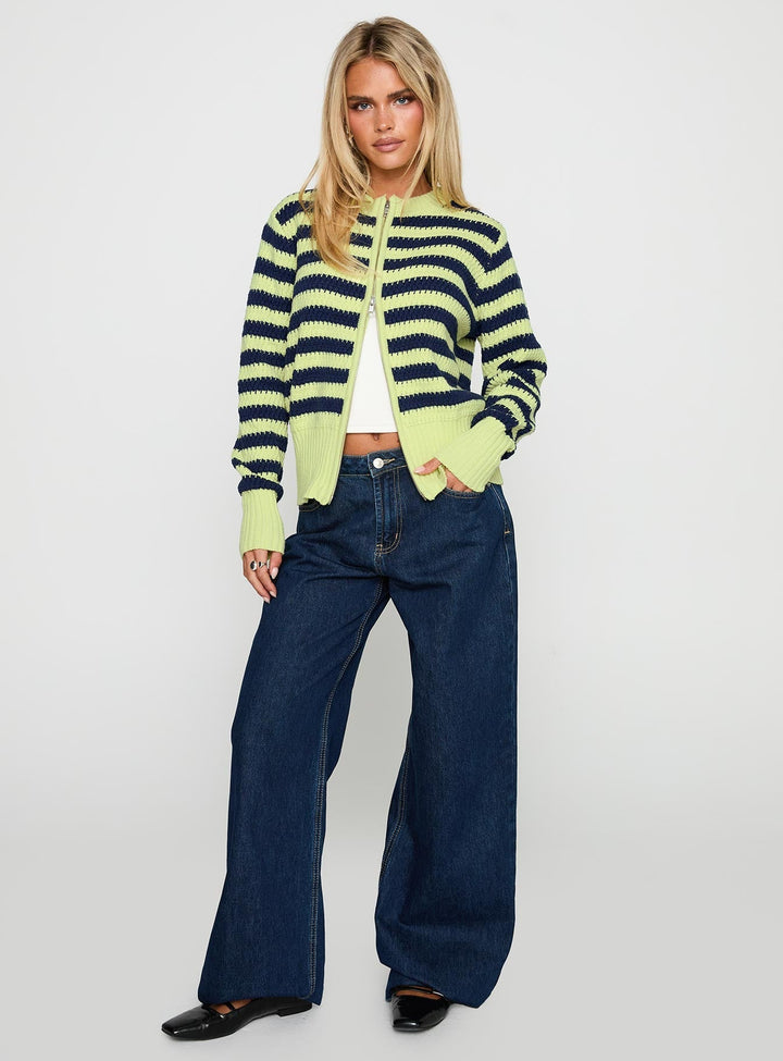 En İyi Zaman Örgü Hırka Yeşil Çizgili