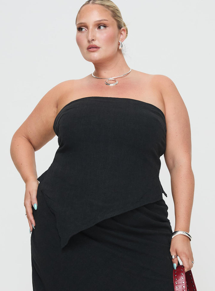 Birdie Asimetrik Keten Karışımlı Üst Siyah Eğri
