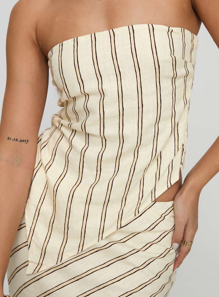Birdie Asimetrik Keten Karışımlı Üst Krem