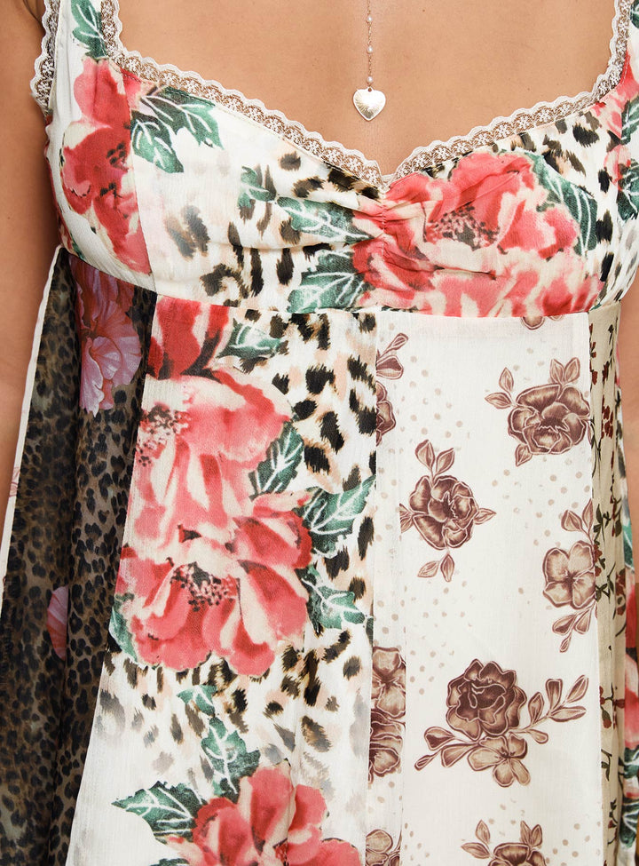 Botanicals Patchwork Mini Elbise Çok Renkli