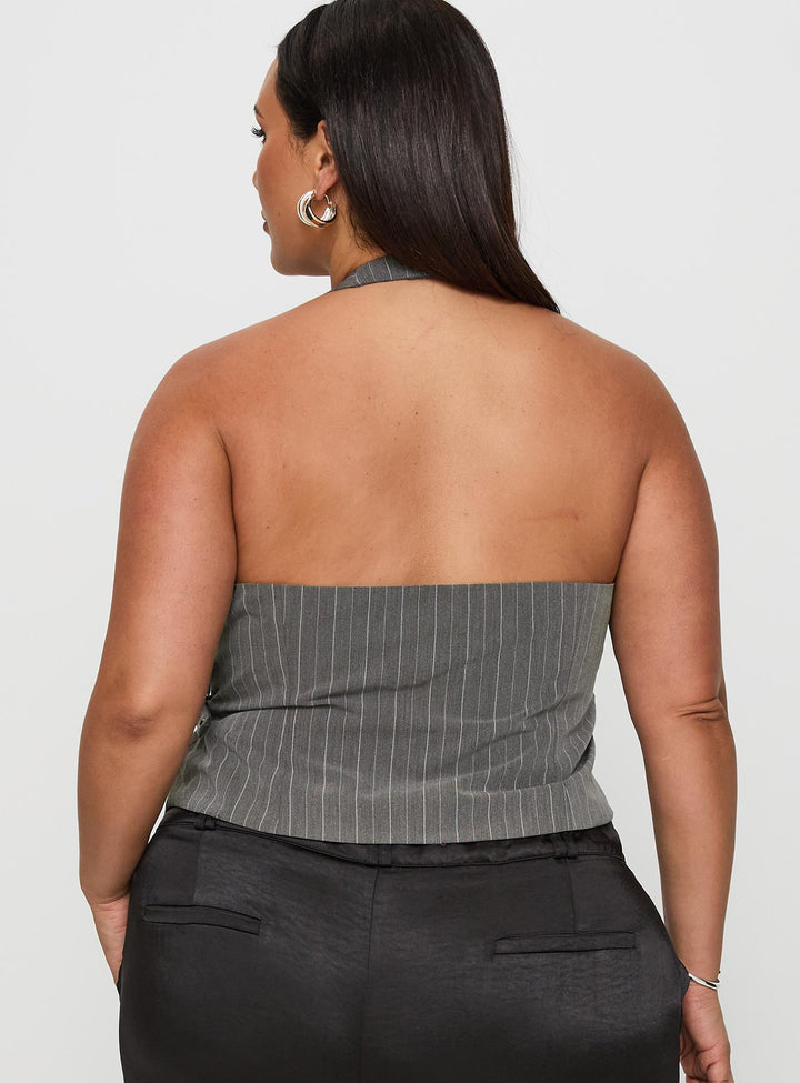 Calexico Tokalı Askılı Üst Gri Çizgili Kavisli