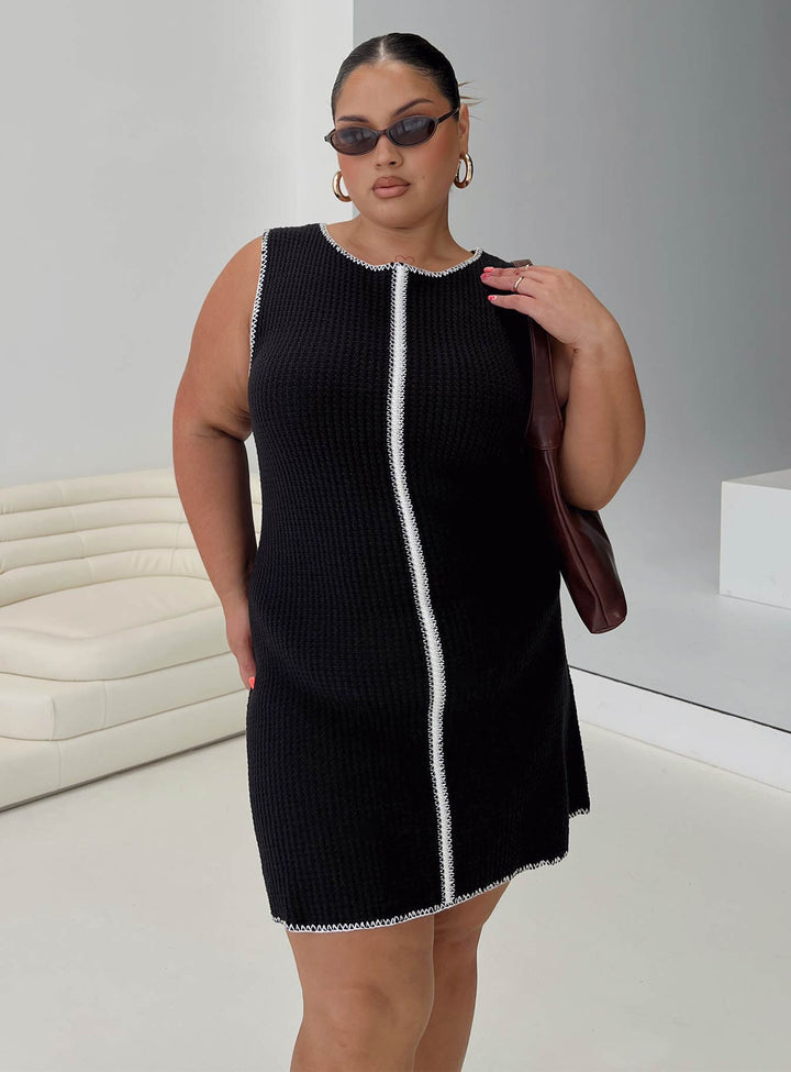 Carlisha Örgü Mini Elbise Siyah / Beyaz Eğri
