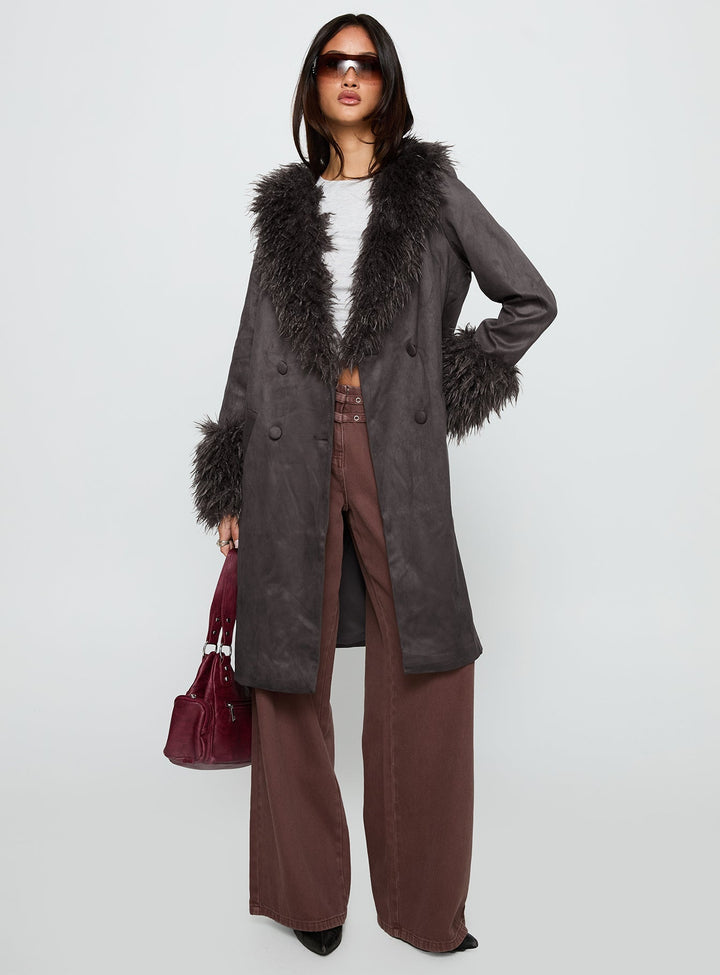 Carry The Feeling Sahte Kürk Kenarlı Ceket Kahverengi