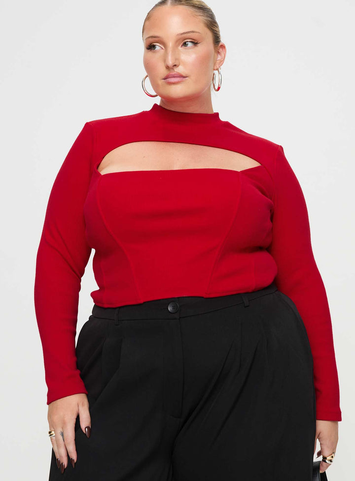Cathey Uzun Kollu Korse Üstü Kırmızı Eğri