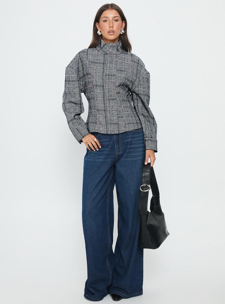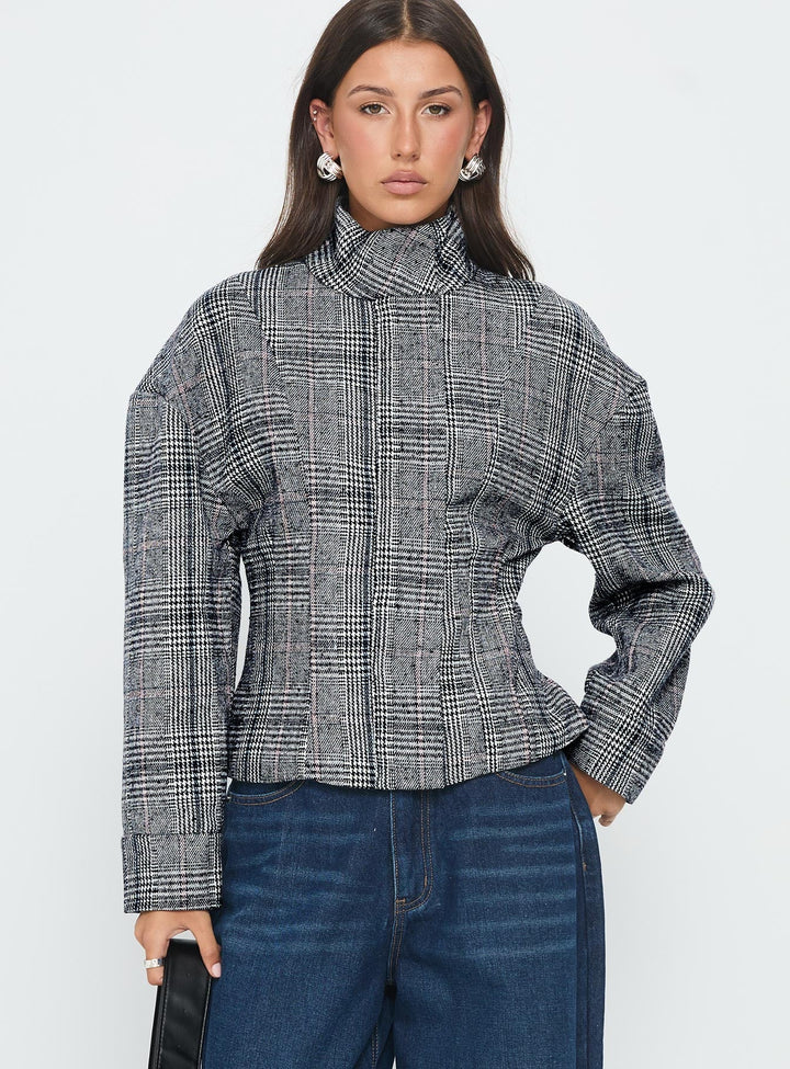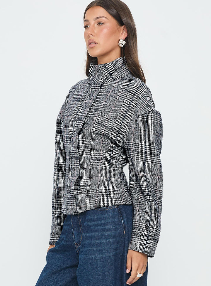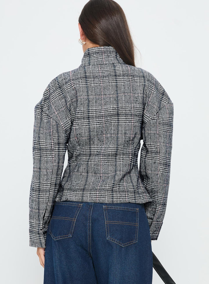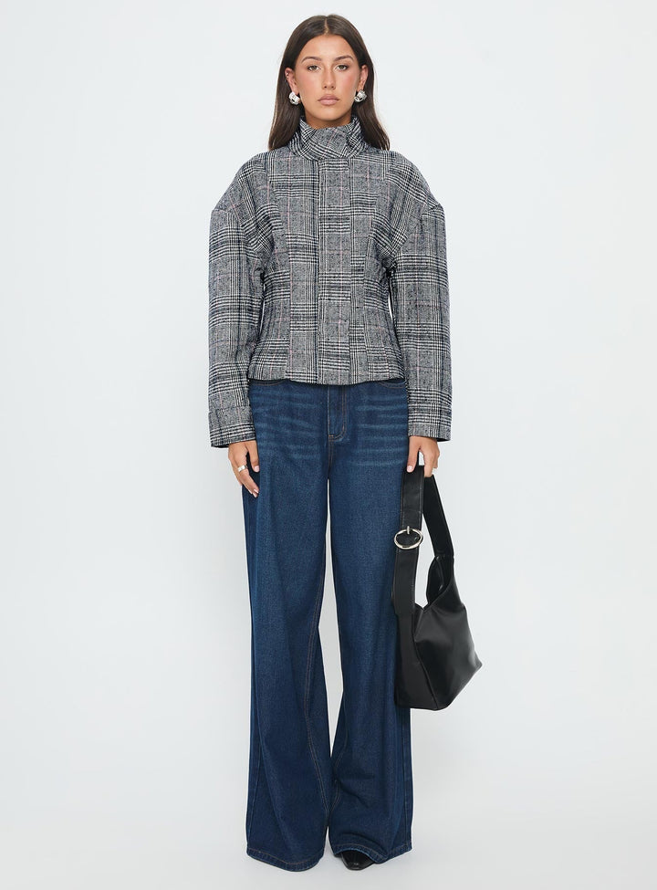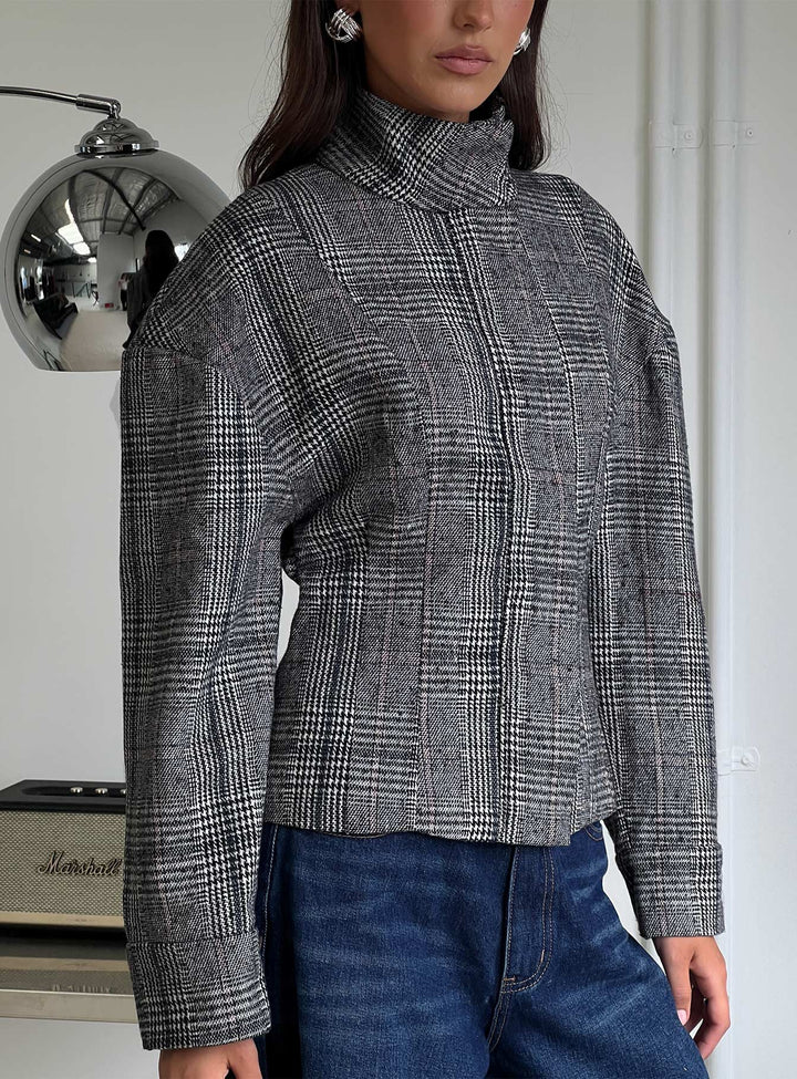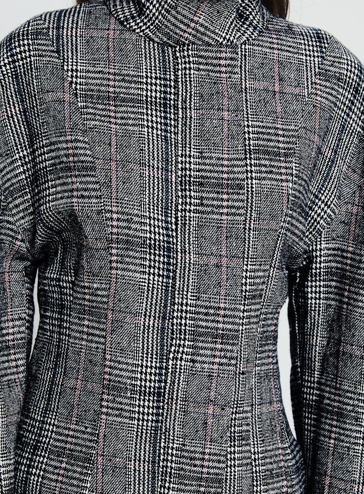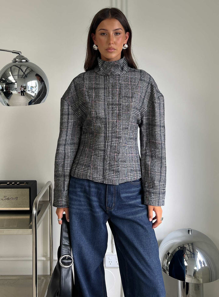 Cathrine Büzgülü Yüksek Yaka Ceket Gri Ekose