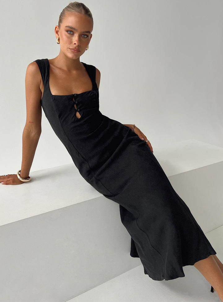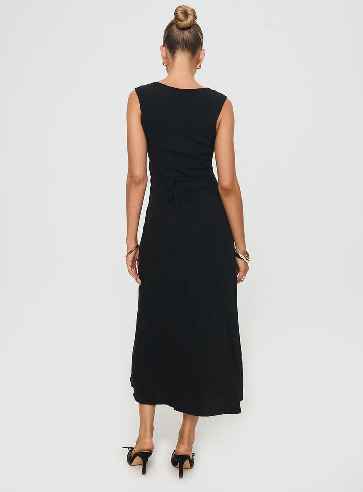 Seçilmiş Kız Keten Karışımlı Midi Elbise Siyah