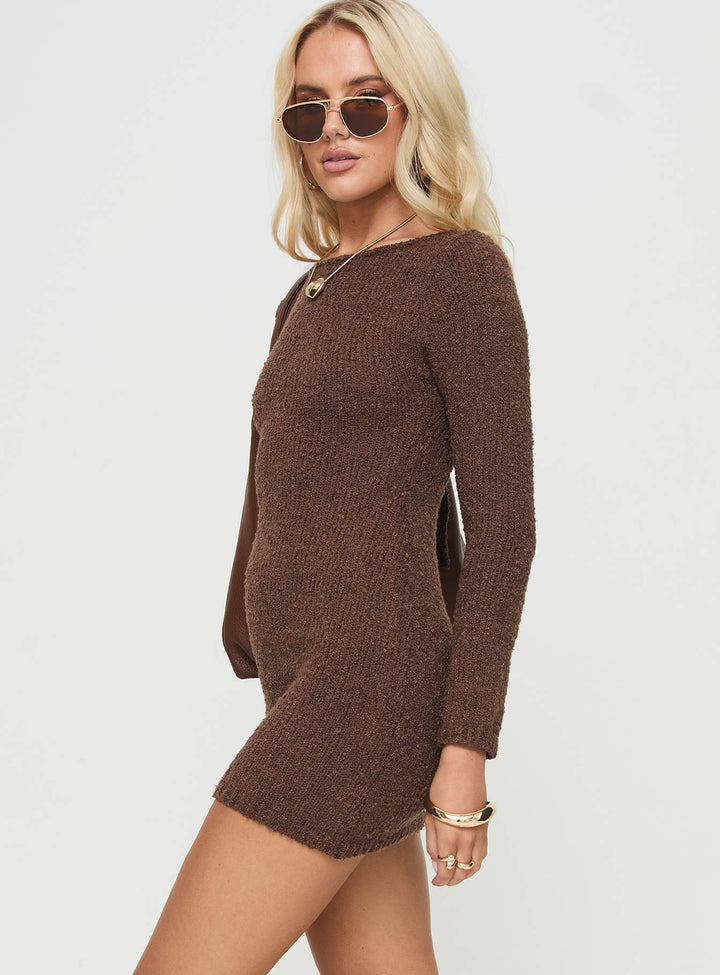 Cosy Up Uzun Kollu Bukle Mini Elbise Çikolata