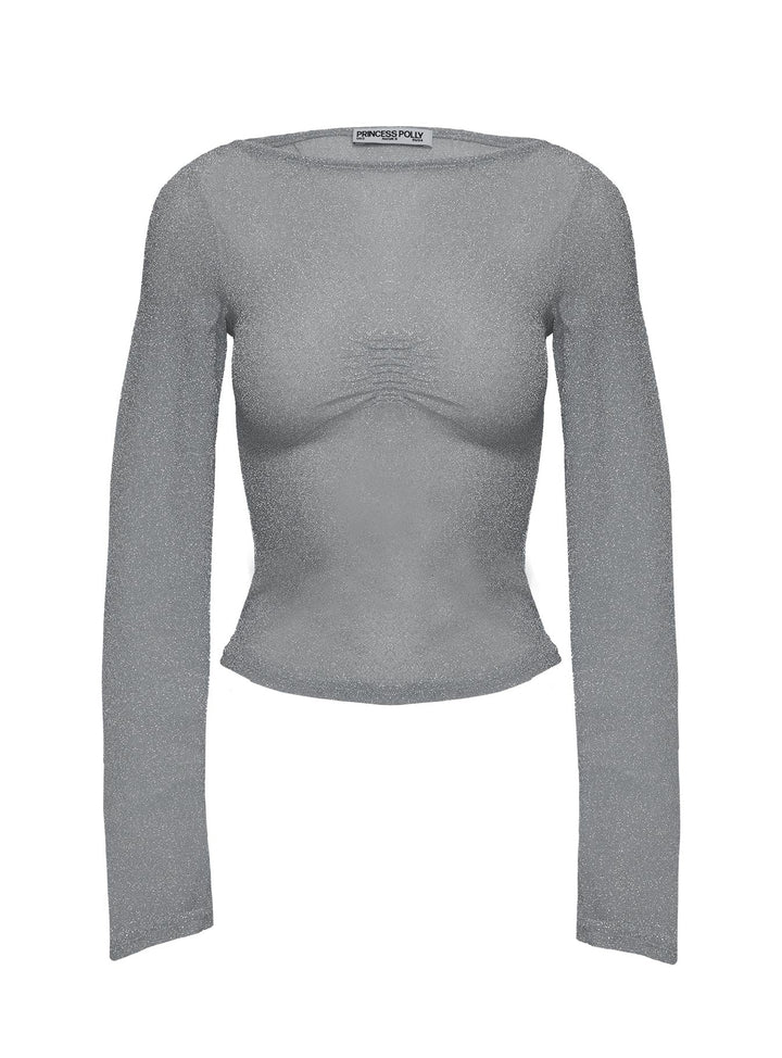 Kristal Berraklığında Uzun Kollu File Üst Gümüş