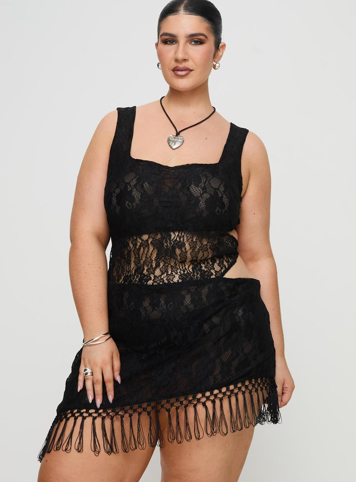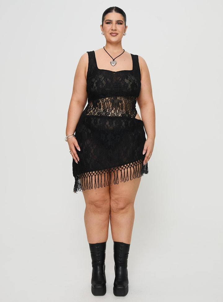 Dakarie Dantel Mini Elbise Siyah Eğri