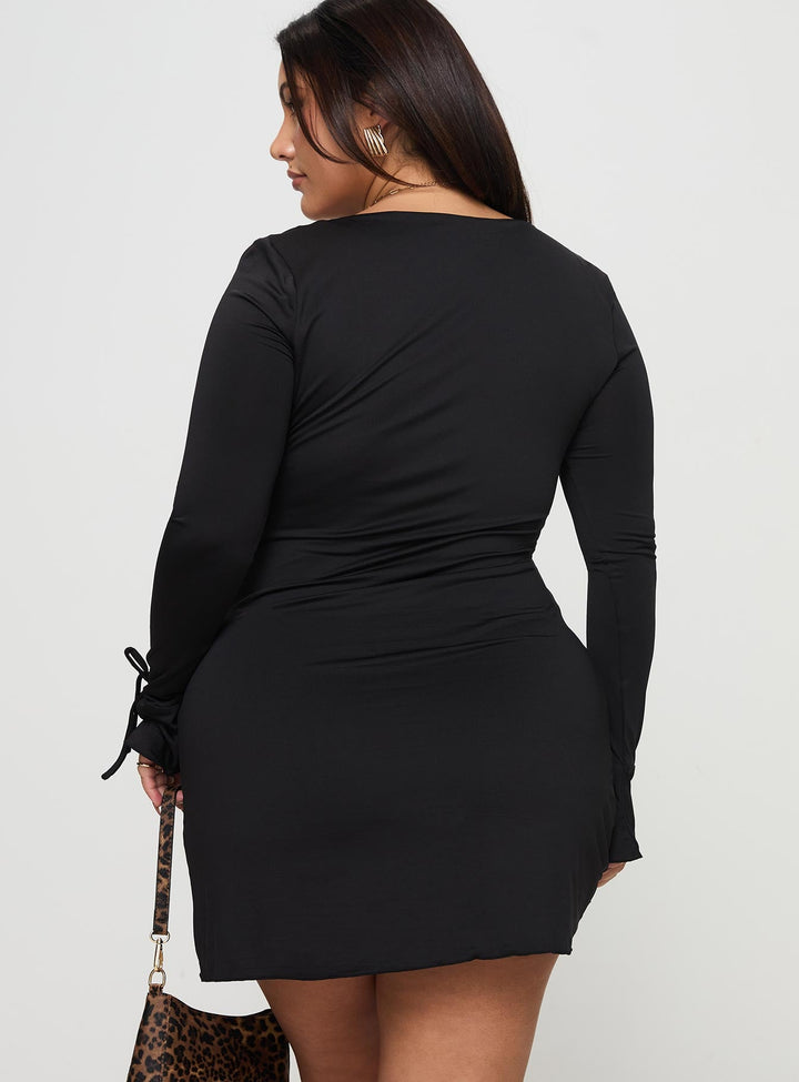 Dalzine Uzun Kollu Mini Elbise Siyah Kavisli