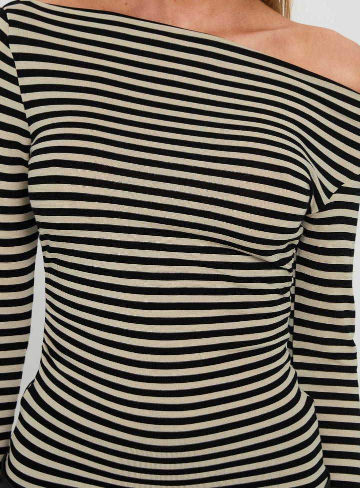 Dereka Tek Omuzlu Uzun Kollu Üst Bej Çizgili