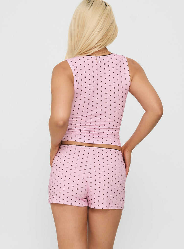 Dream State Kare Yaka Uyku Seti Pembe Polka