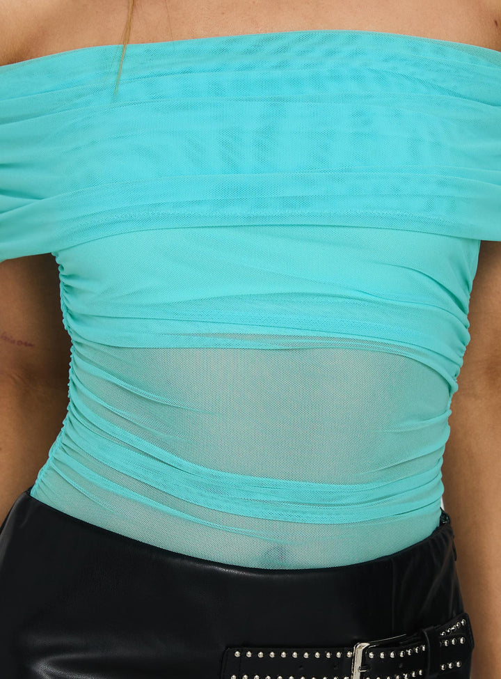 Dreamscapes Omuz Açık File Bodysuit Mavi