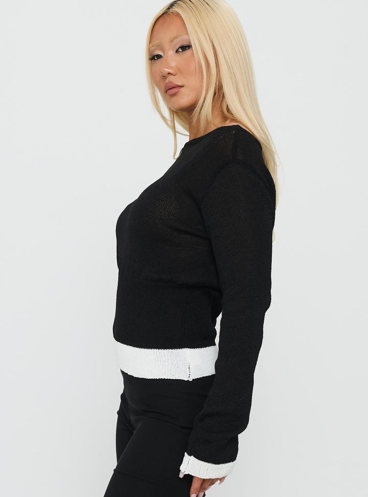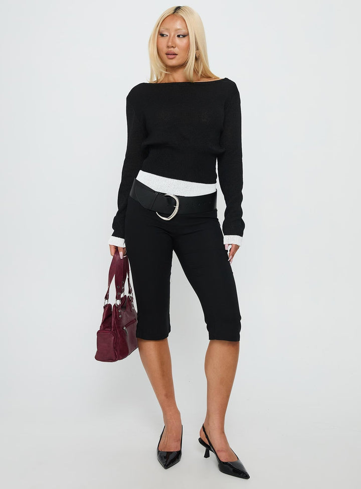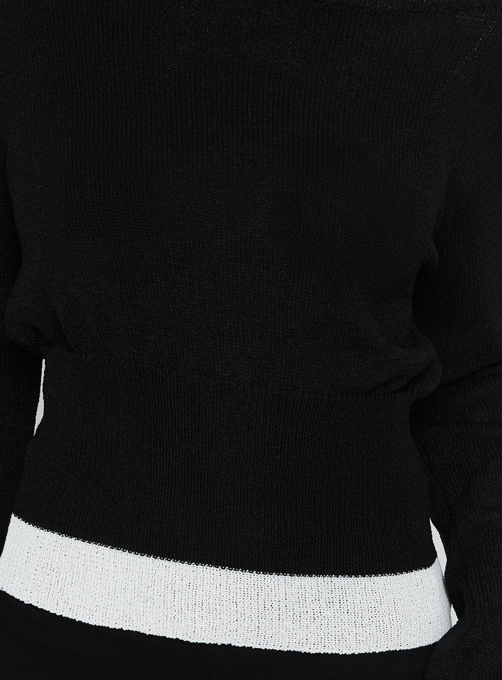 Dresano Geniş Yakalı Örgü Kazak Siyah / Beyaz