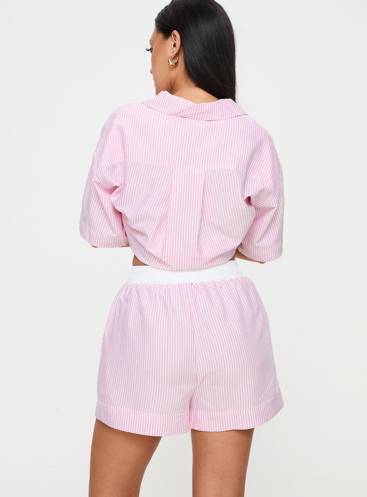 Erken Kalkan Uyku Şortu Pembe Çizgili