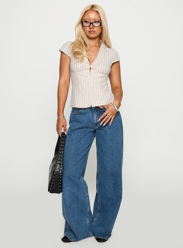 Ellis Adası Yakalı Üst Pembe Çizgili