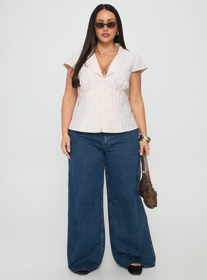 Ellis Adası Yakalı Üst Pembe Çizgili Eğri