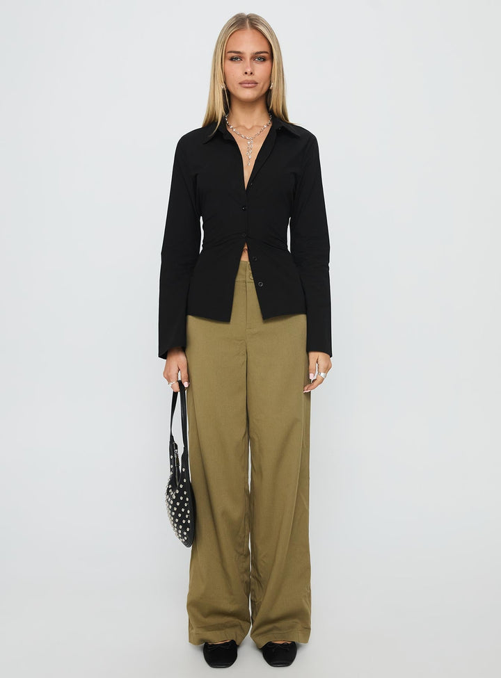 Eryx Bağlamalı Düğmeli Üst Siyah