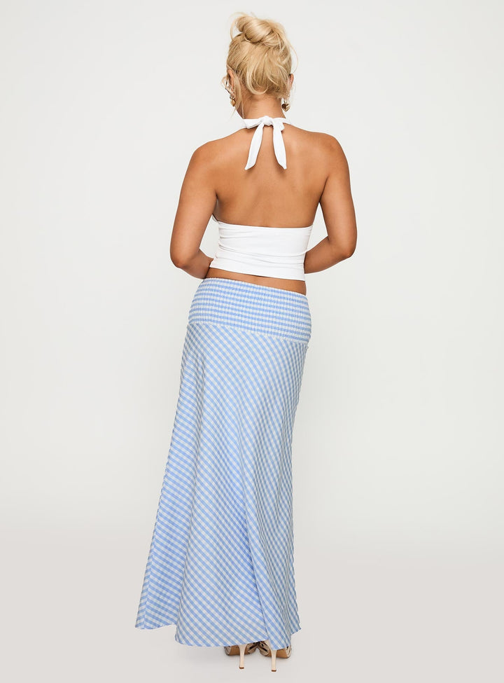 Her Kız Büzgülü Uzun Etek Mavi Kareli