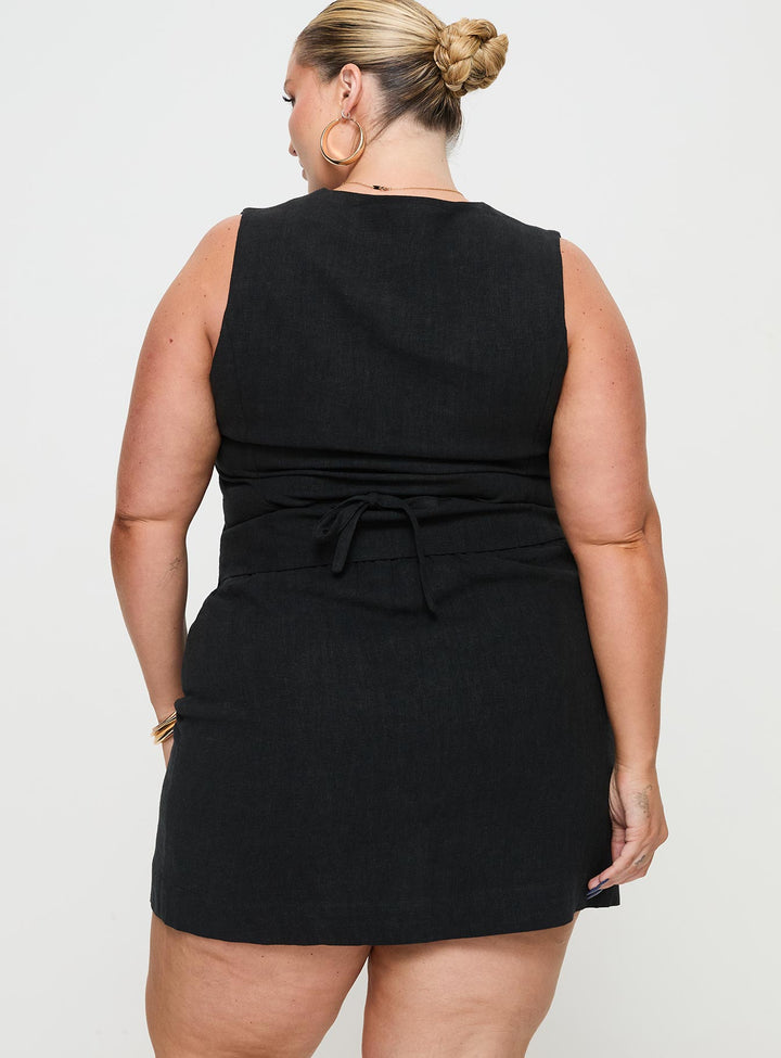 Evry Keten Karışımlı Mini Etek Siyah Eğri