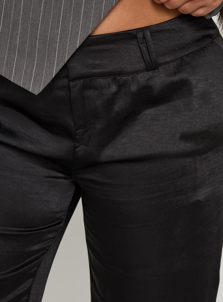 First Place Düşük Bel Saten Pantolon Siyah Eğri