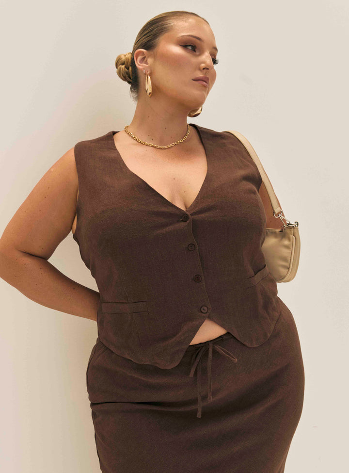 Zencefil Keten Karışımı Yelek Çikolata Eğrisi