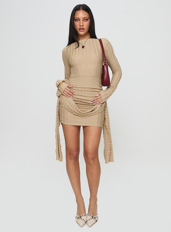 Glory Mini Elbise Bej
