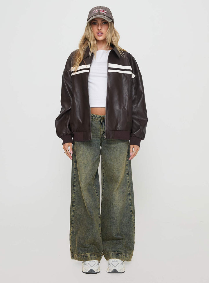 Goldsmith Suni Deri Bomber Ceket Çikolata / Beyaz