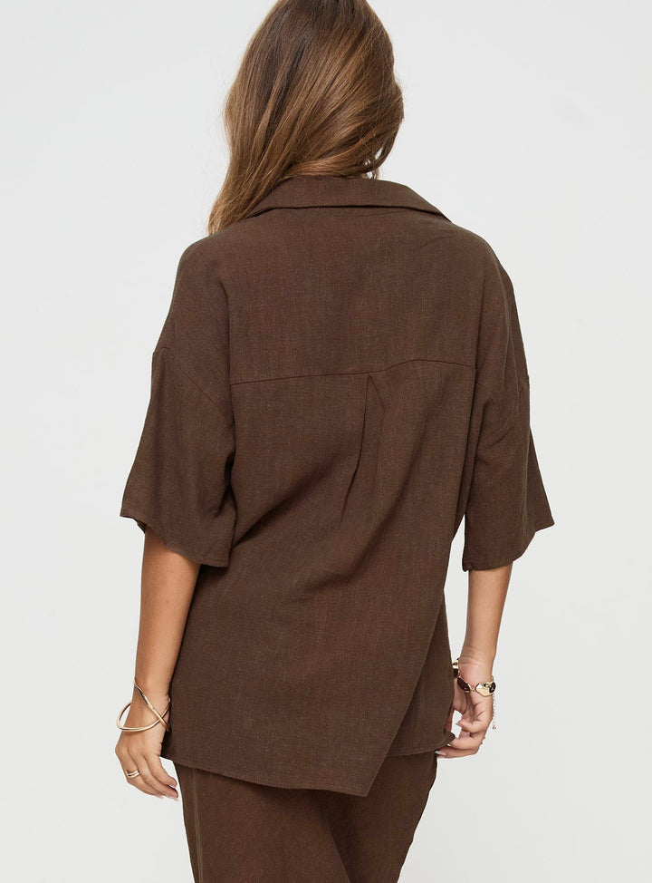 Guava Keten Karışımlı Gömlek Çikolata