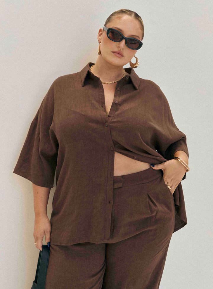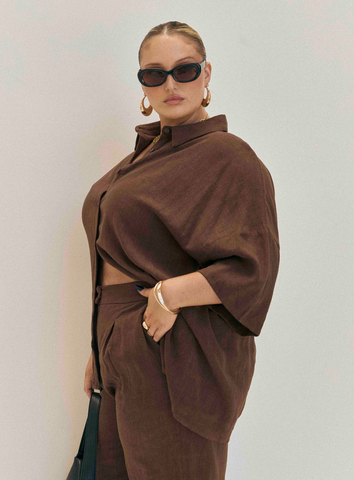 Guava Keten Karışımlı Gömlek Çikolata Eğrisi