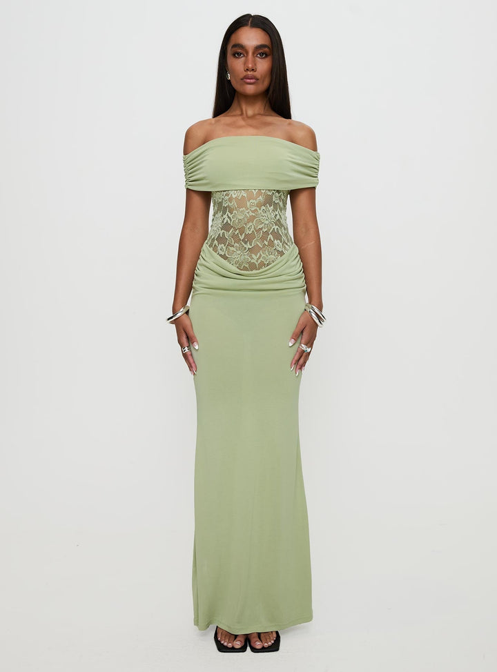 Gwendolen Omuz Açık Uzun Elbise Yeşil