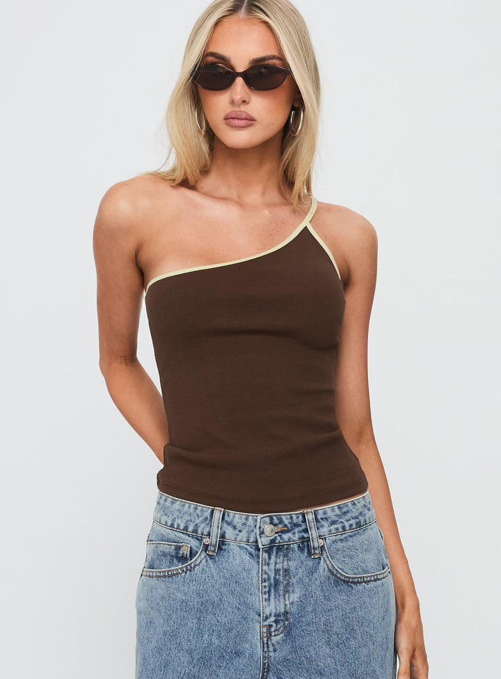 Hold It Down Tek Omuzlu Kontrast Üst Çikolata / Sarı