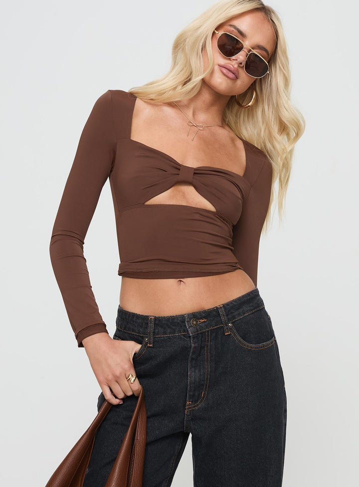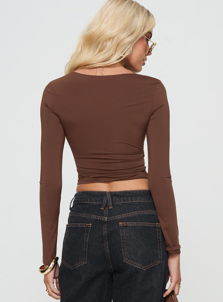 Sıkı Tutun Uzun Kollu Üst Kahverengi