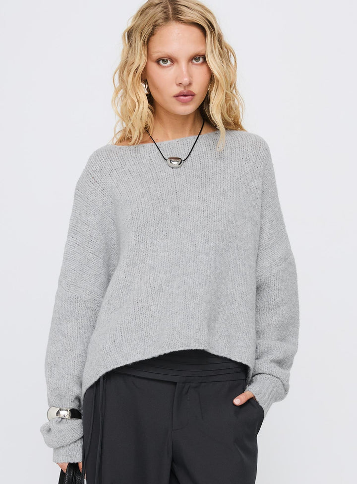 Ramy Geniş Yakalı Örgü Kazak Gri