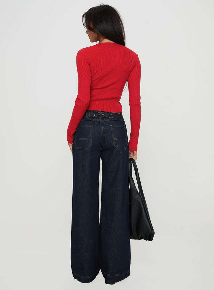 Jankins Orta Bel Bol Paça Kot Pantolon Koyu Mavi Yıkama