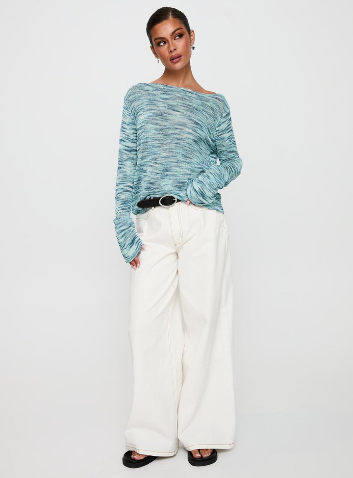 Lay Your Cards Örgü Kazak Mavi Çok Renkli