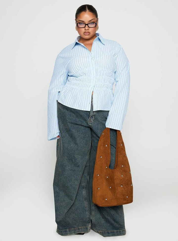 Liesel Büzgülü Uzun Kollu Üst Çizgili Eğri