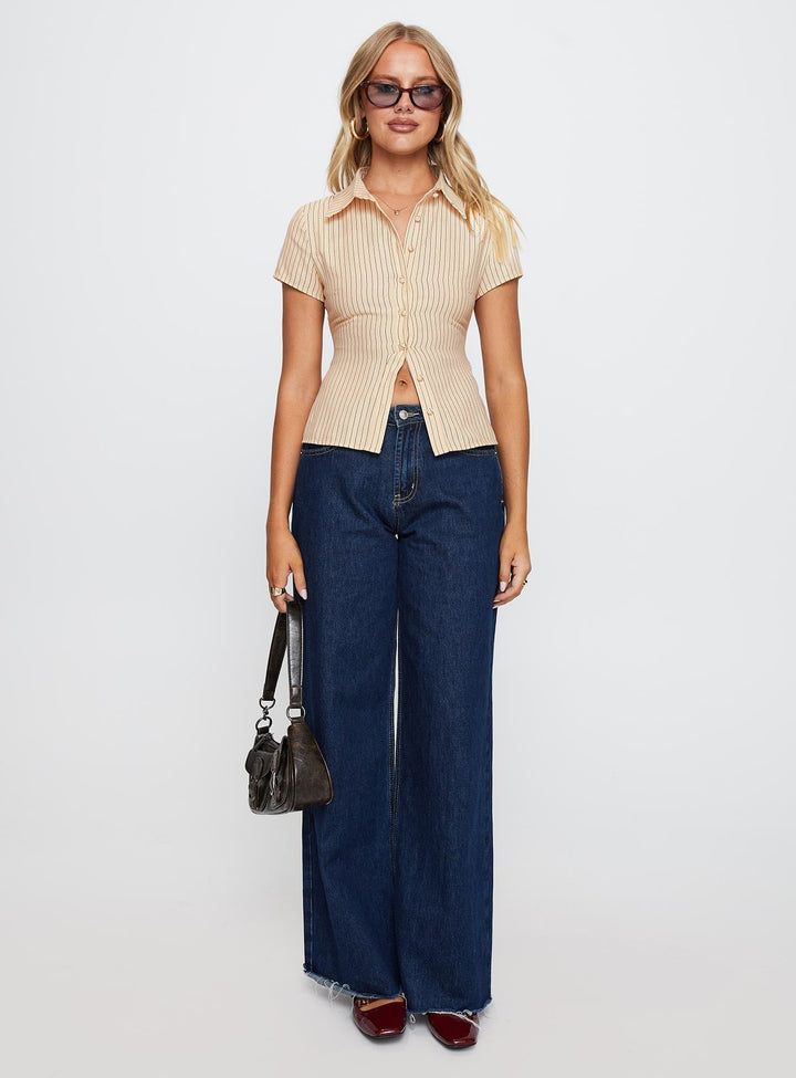 Çıkarılabilir Düğmeli Üst Krem / Lacivert Çizgili