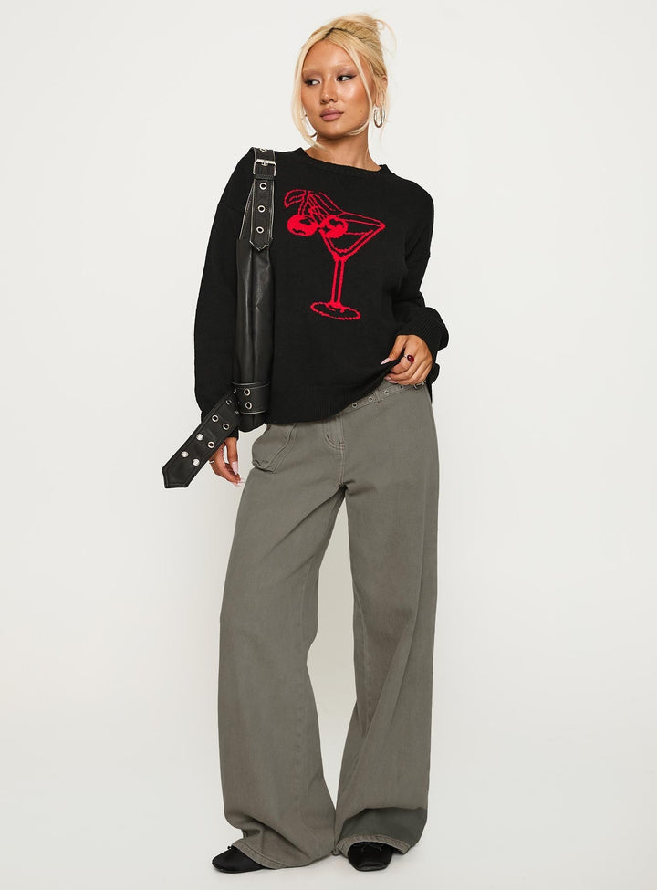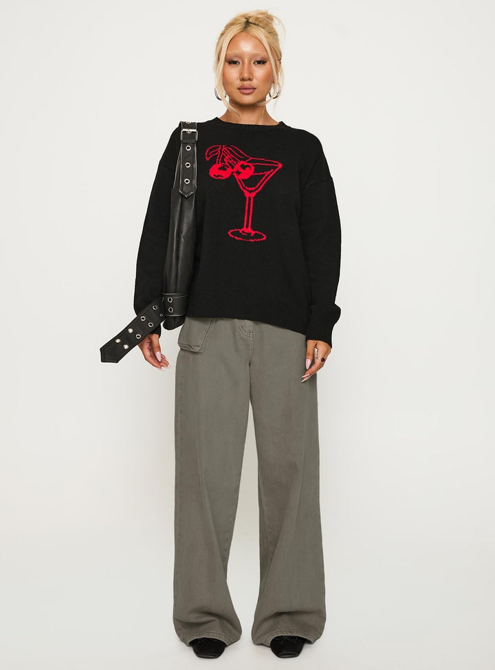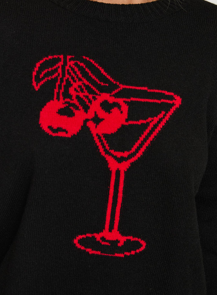 Like A Charm Örgü Kazak Siyah / Kırmızı